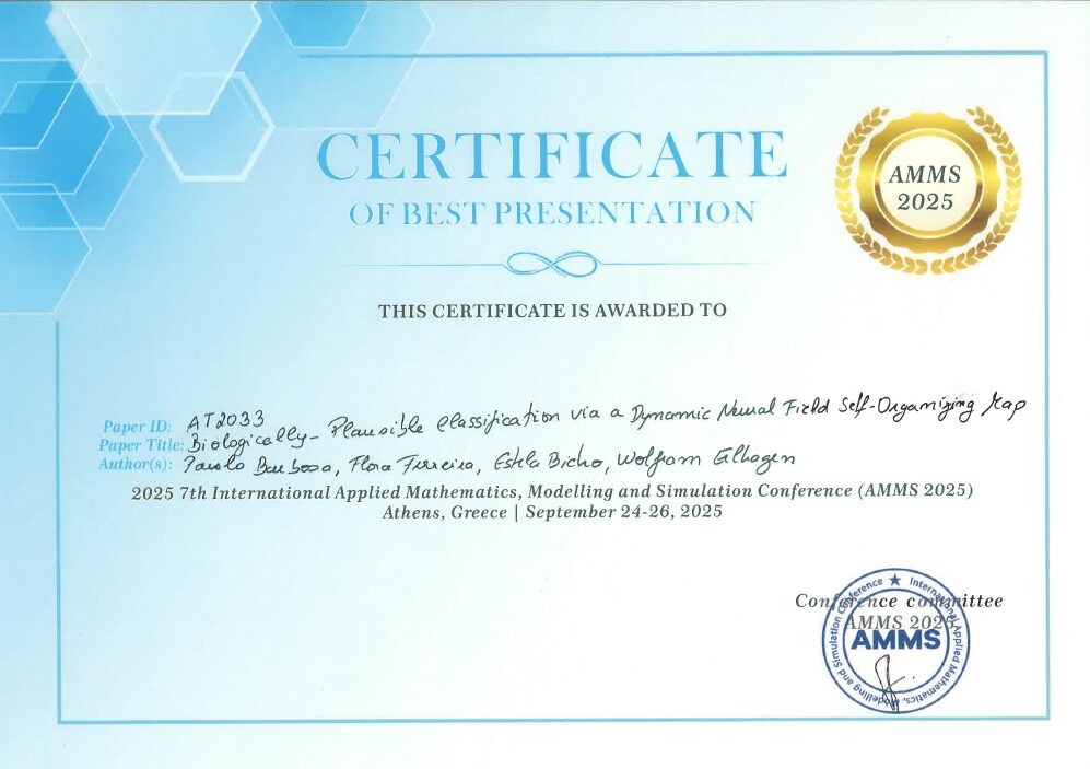Estela Bicho, Flora Ferreira, Paulo Barbosa e Wolfram Erlhagen são os autores do artigo com o título “Biologically-plausible classification via a Dynamic Neural Field Self-Organizing Map”.
