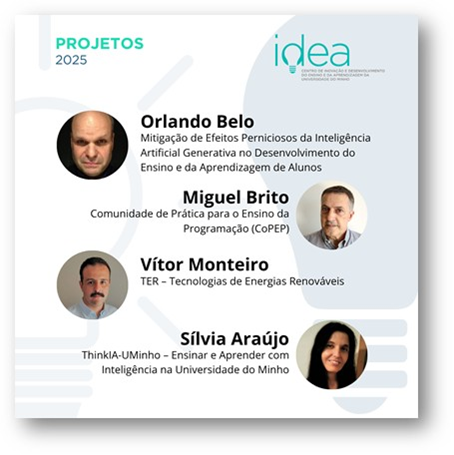 Três projetos do Centro ALGORITMI foram premiados no Programa de Apoio a Projetos de Inovação e Desenvolvimento do Ensino e da Aprendizagem – IDEA-UMinho na 2.ª chamada da edição de 2025.